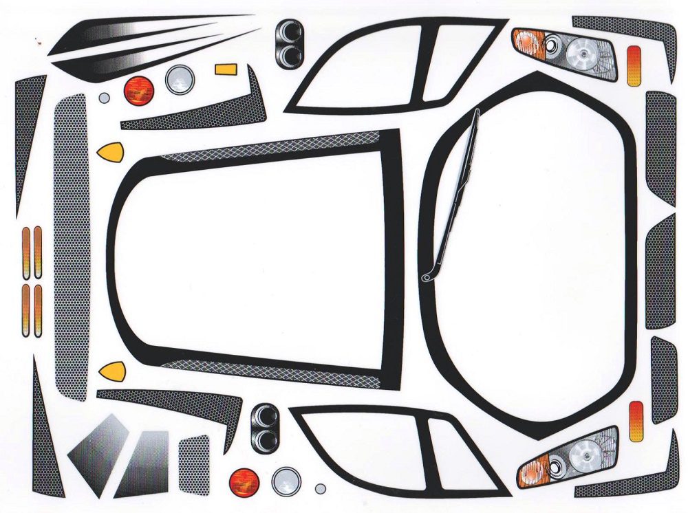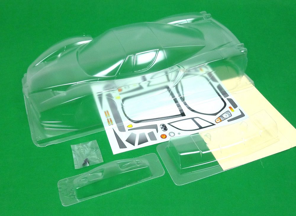 Body shell is as per pics #3~#9 –Enzo Ferrari -supplied with decals – pic #10, Wing and light buckets – pic #9 and window/paint masks pic #2.