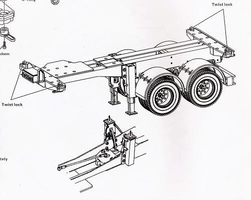 1/ NEW trailer kit in original packing (container available separately) -A container (available separately) can be ‘locked’ to trailer by the included twist locks.