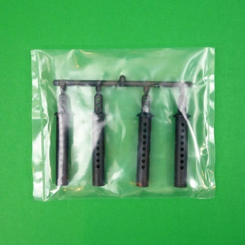 Set of 4 body posts as per pic # 1 above. They are hollow and slide over your old posts and are held in place with body clips. Inner diameter is approx 6mm. Total length is approx. 60mm.