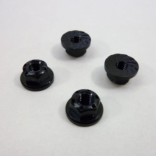 Nuts are self locking type, serrated face, not nyloc, flanged.