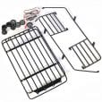 Metal rollcage and luggage tray with lights. This mesh wire luggage tray is made of durable steel, which is a great addition to your RC crawler. It can hold up to boxes, jerry cans and other miscellaneous items. With the YR 1:10th scale RC bungee straps or nylon ‘tie downs’ you can secure your luggage or boxes on top of this rack.