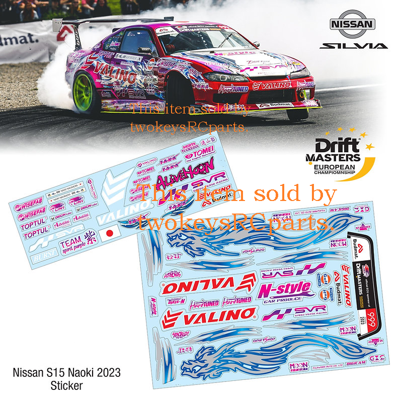 naoki 2023 sticker set for nissan silvia s15 1:10th scale rc drift car.