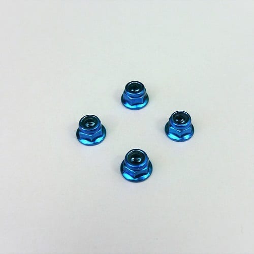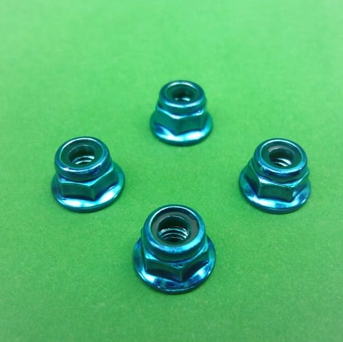 Set 4 (four) -Light Blue ANODISED steel flanged locknuts -wheel nuts to suit nearly all 1:10 th RC cars that use 4mm  (the threaded part of the axle) axles.